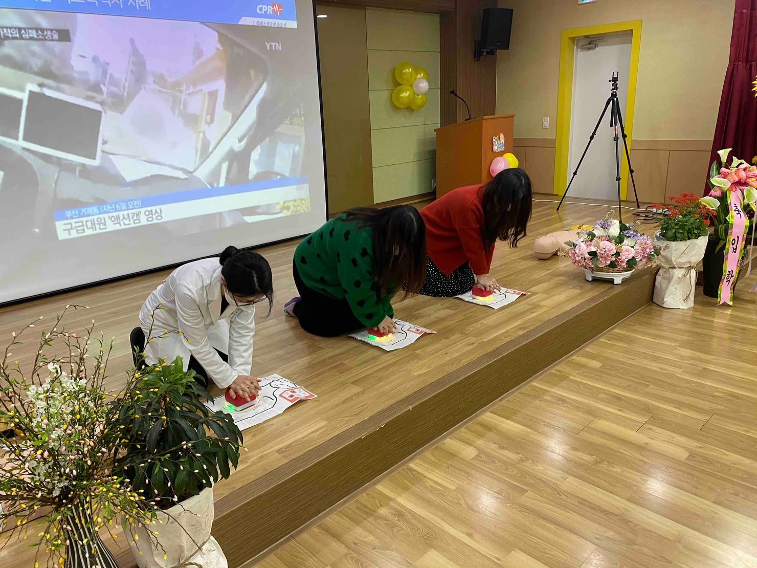 영상이나 자료 공유를 통해 이론교육을 진행하고 술기 실습교육을 통해 디테일한 가슴압박 자세와 깊이,