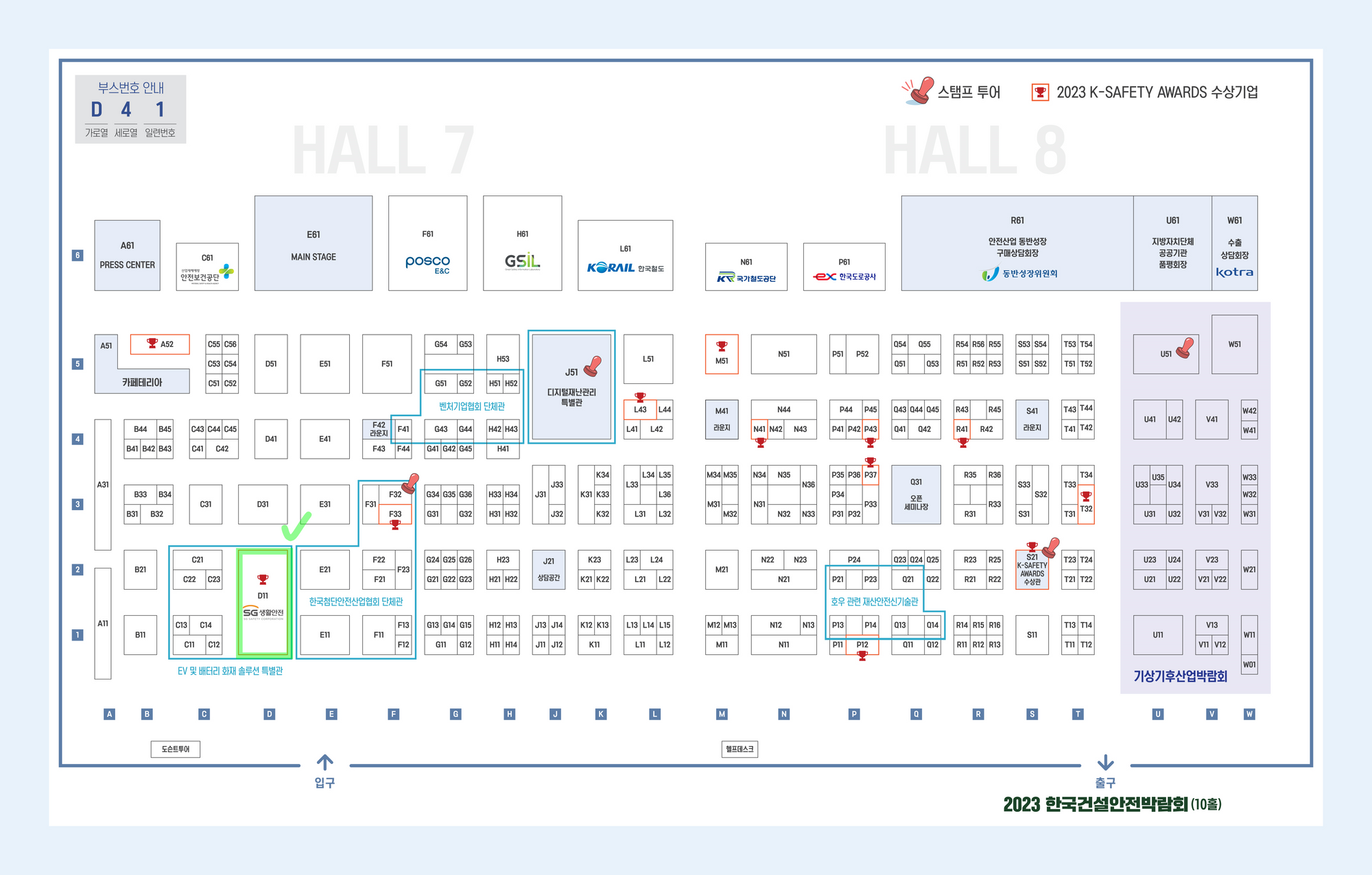 위의 부스배치도를 통해 SG생활안전의 위치를 확인하실 수 있습니다.