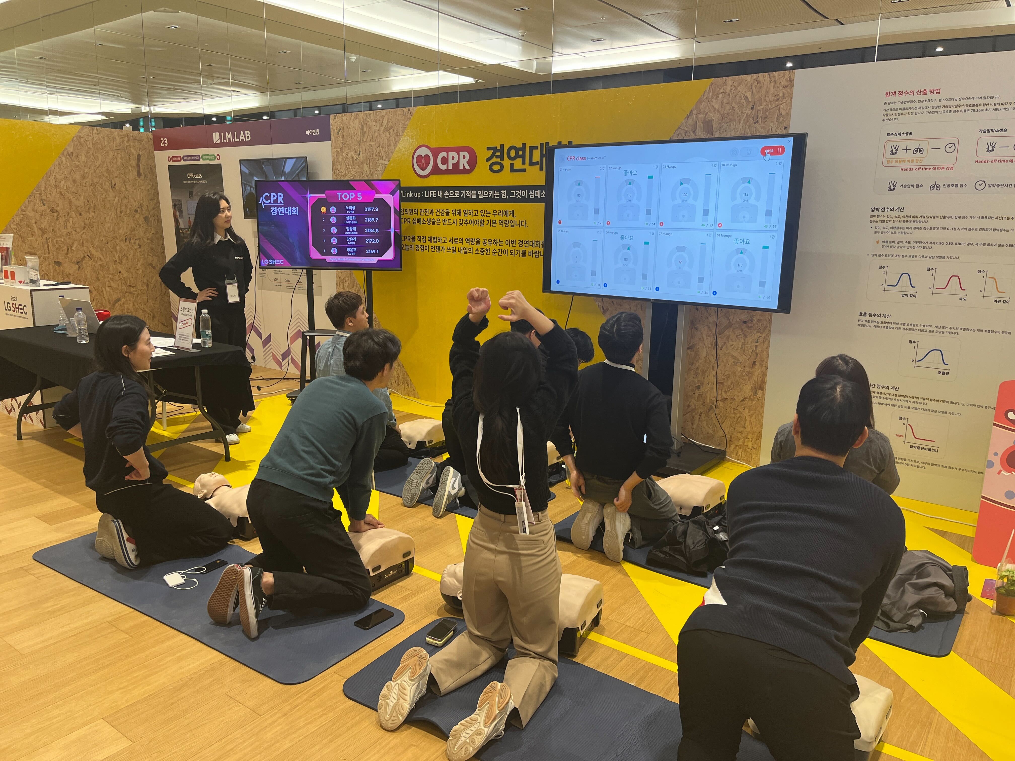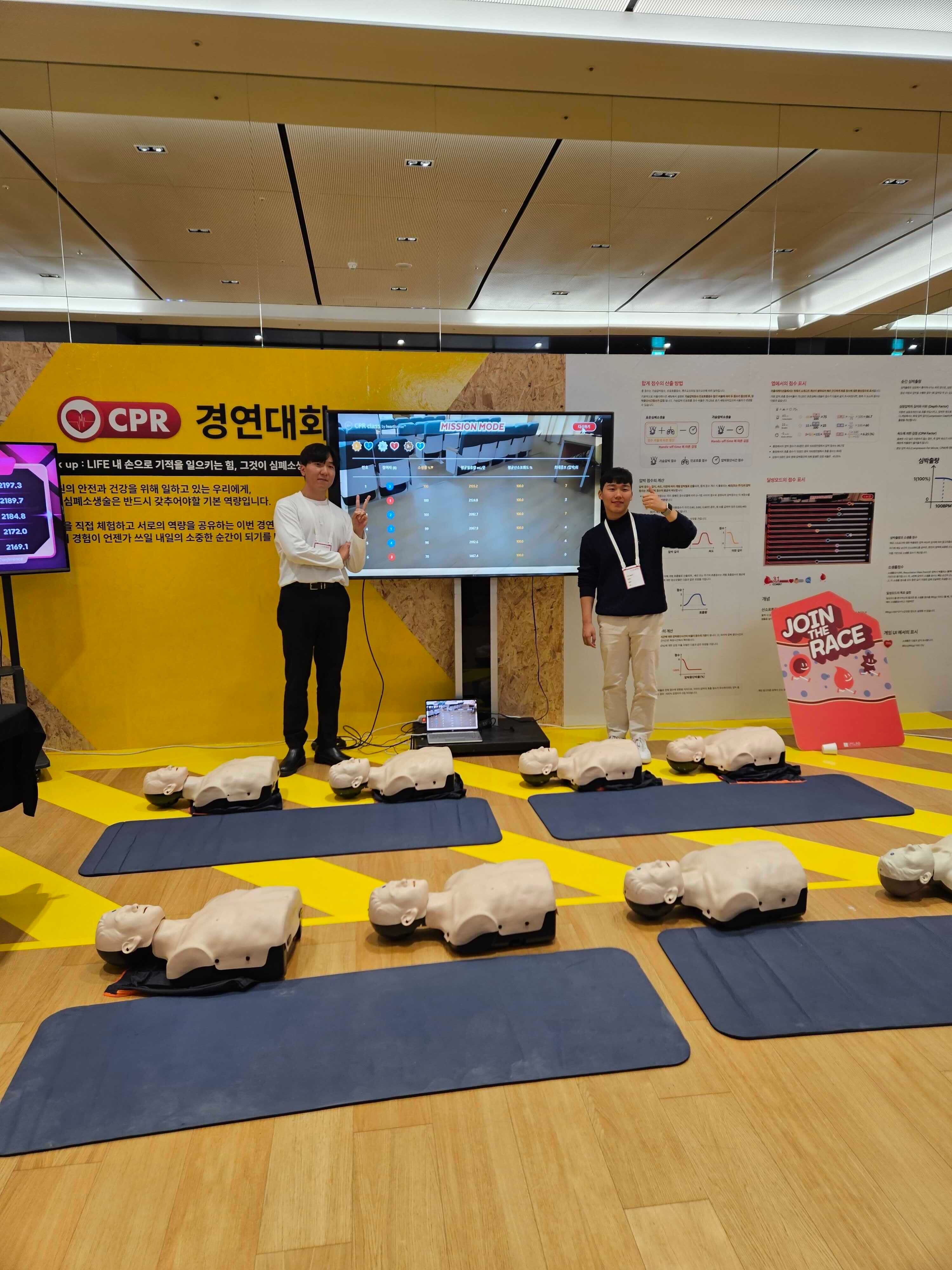 심폐소생술 단체교육 프로그램인 CPR class를 넓은 공간에서 시연하여
